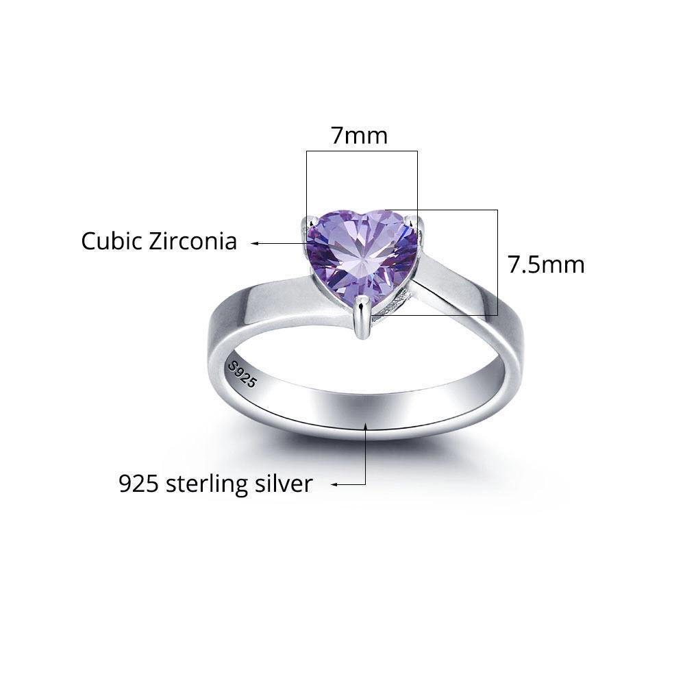 Sterling Silver Solitaire Big Heart Birthstone Ring for Women with Engraving
