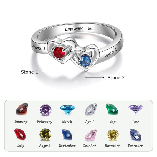 Sterling Silver Promise Ring with Interlocking Hearts and 2 Birthstones